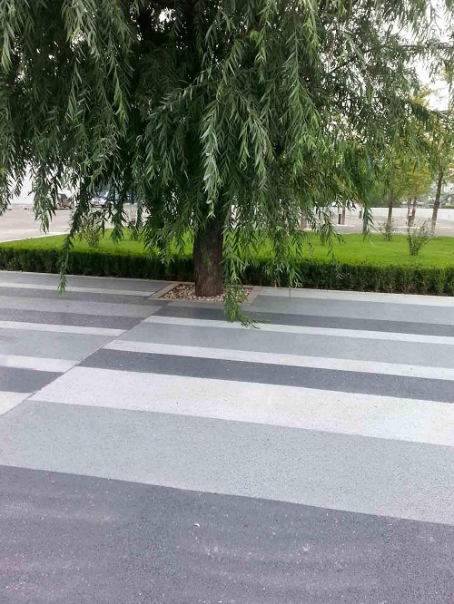 因透水混凝土系统拥有系列色彩配方,配合设计的创意,针对不同和个性要求的装饰风格进行铺设施工。这是传统铺装和一般透水砖不能实现的特殊铺装材料。透水混凝土的铺装工艺,类似于混凝土的铺装,但又不同于混凝土铺装方面。二彩色透水混凝土材料的组成透水混凝土由透水混凝土专用胶结剂碎石水组成。透水混凝土专用胶结剂—由西安彩路道路工程有限公司生产的一种专用胶结剂,其是以高强度等级的硅酸盐水泥为基料,配以多种助剂强度与粘结力组成的粉状料,并可按用户要求加入无机耐候颜料,使其和碎石水按一定比例混合后,组成不同色彩的透水混凝土面层。